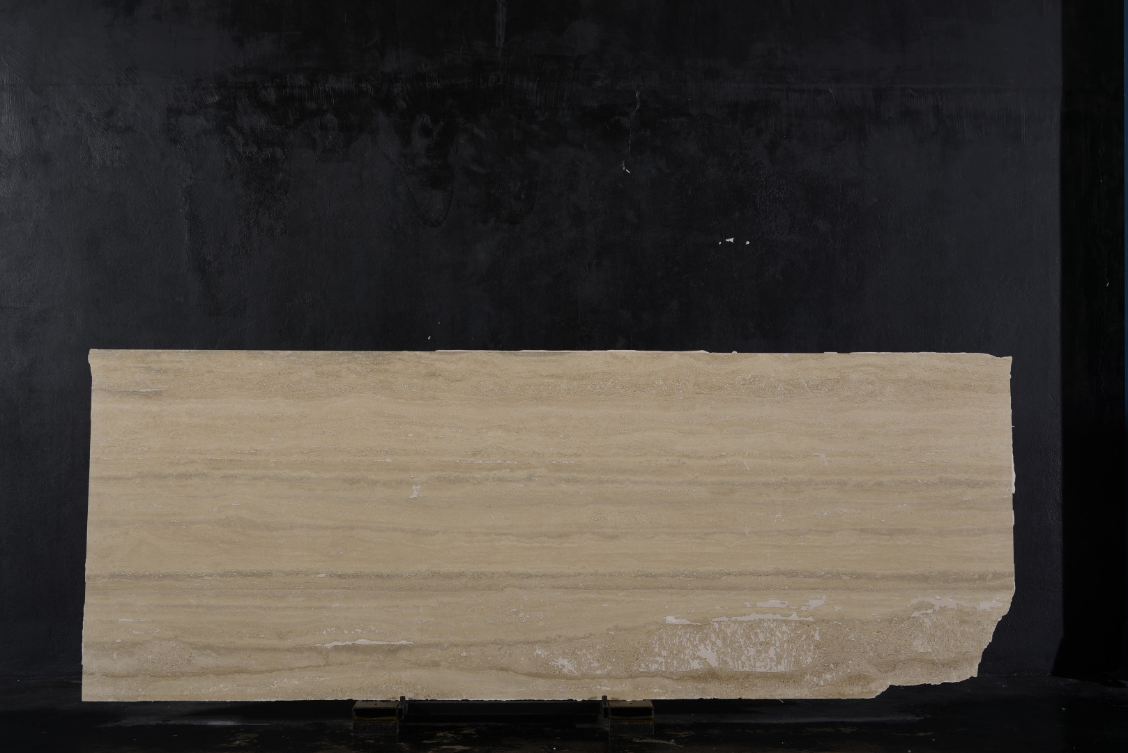 Travertino Romano. Marmo. Origine: Italia. Utilizzo: interni ed esterni. Lastre lucide da cm 300x110x2/3. Rif.:bl 1376.