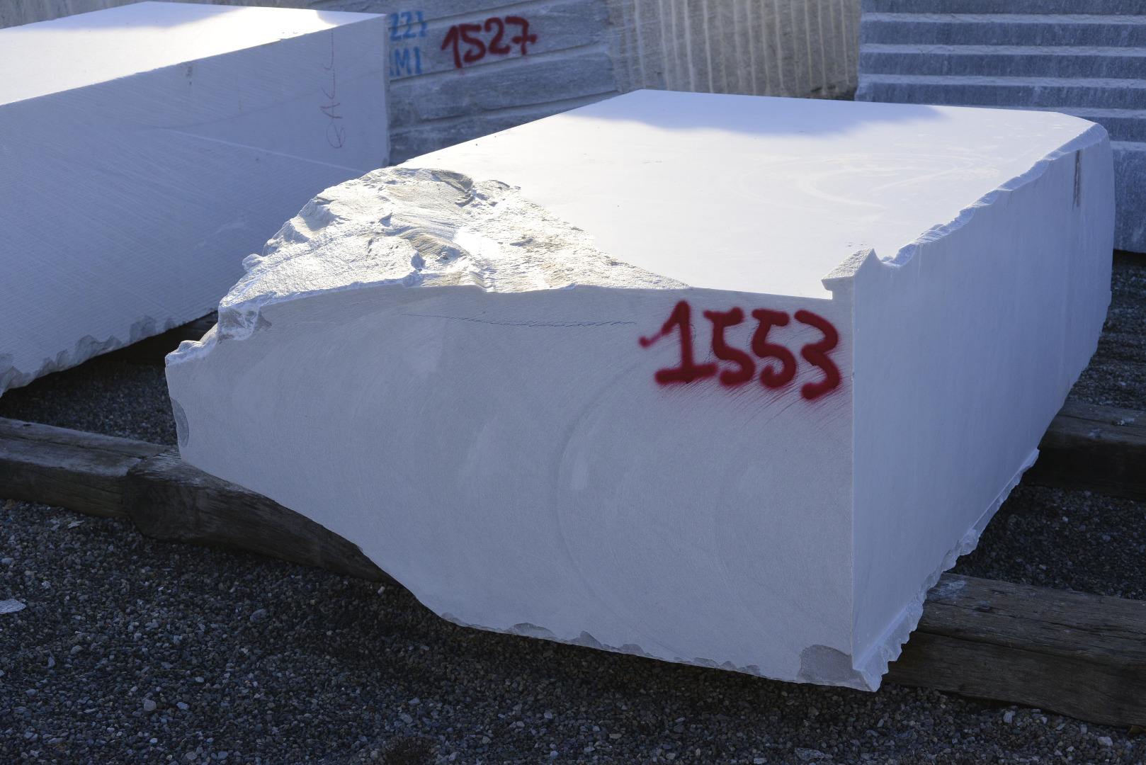 Blocco Bianco Carrara. Marmo. Origine: Italia. Utilizzo: interni ed esterni. Rif:.bl 1553-1556-1558.