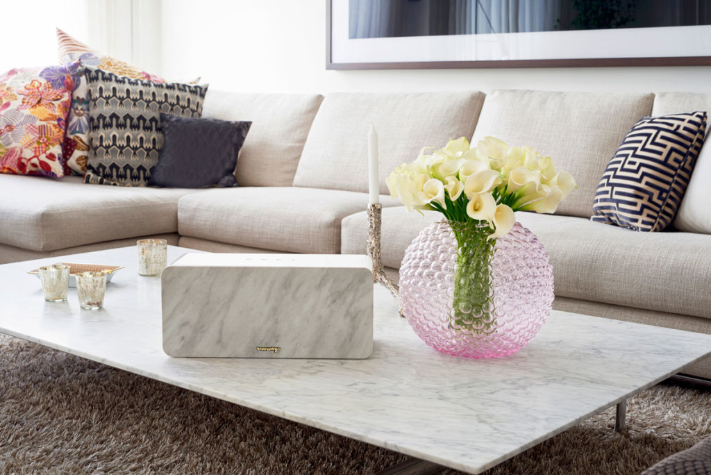 Diffusore acustico in marmo Bianco Carrara. Sound Piece Mini. Happy Plugs.